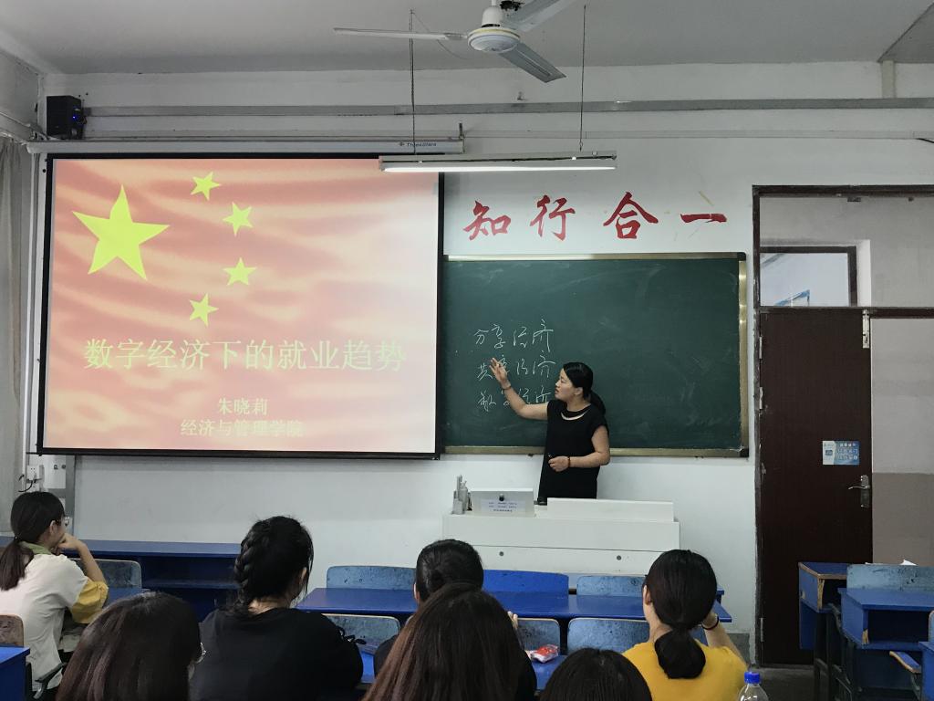 2019年9月23日上午,“行知讲堂”系列学术讲座在三孝口校区308教室举行。本次讲座由pp电子游戏平台网站朱晓莉老师主讲,题目是“数字经济下的就业趋势”,来自2018级人力资源管理专业的学生聆听了讲座。