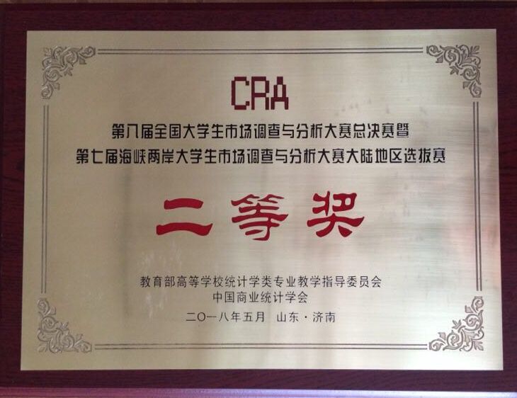 5月26-27日,pp电子游戏平台网站未良莉老师带领的何子芊、叶凡、周倩、张沈伟4位学生参加了“正大杯”第八届全国大学生市场调查与分析大赛总决赛,喜获国赛二等奖。本次总决赛由教育部高等学校统计学类专业教学指导委员会、中国商业统计学会共同主办,山东财经大学承办。比赛过程分为两个环节,作品展示和现场答辩,来自学界和业界的30余位专家担当了此次比赛的评委。此前,在安徽省赛区的选拔赛中,未良莉、姚垚、刘冬萍老师指导的三个团队均获省赛一等奖,陈慧慧、郭云老师指导的两个团队均获省赛二等奖,另有5个团队获省赛三等奖、6个团队获省赛优秀奖。