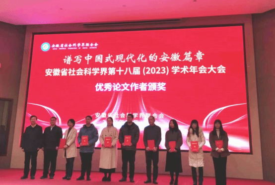 12月27日,安徽省社会科学界第十八届(2023)学术年会大会在合肥举行,公布了第十八届(2023)学术年会获奖成果名单,pp电子游戏平台网站首次获得安徽省社会科学界学术年会征文奖,共获一等奖2项、优秀奖1项。pp电子游戏平台网站钟玉文副院长作为获奖代表参加了颁奖仪式。
