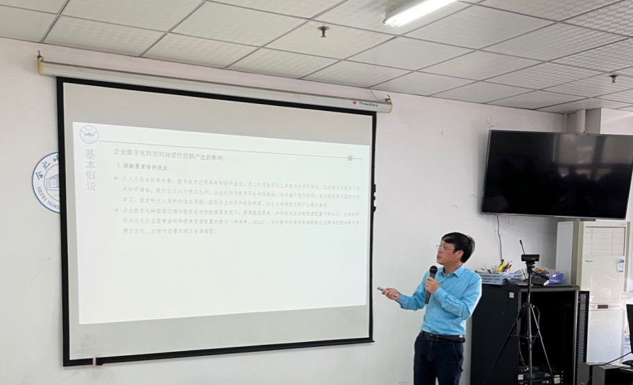 10月9日下午,安徽大学经济学院副院长杨仁发教授应邀来校作题为“数字化转型的持续性创新效应研究”的学术报告。讲座由pp电子游戏平台网站副院长钟玉文主持,学院全体老师共同参加了本次讲座。