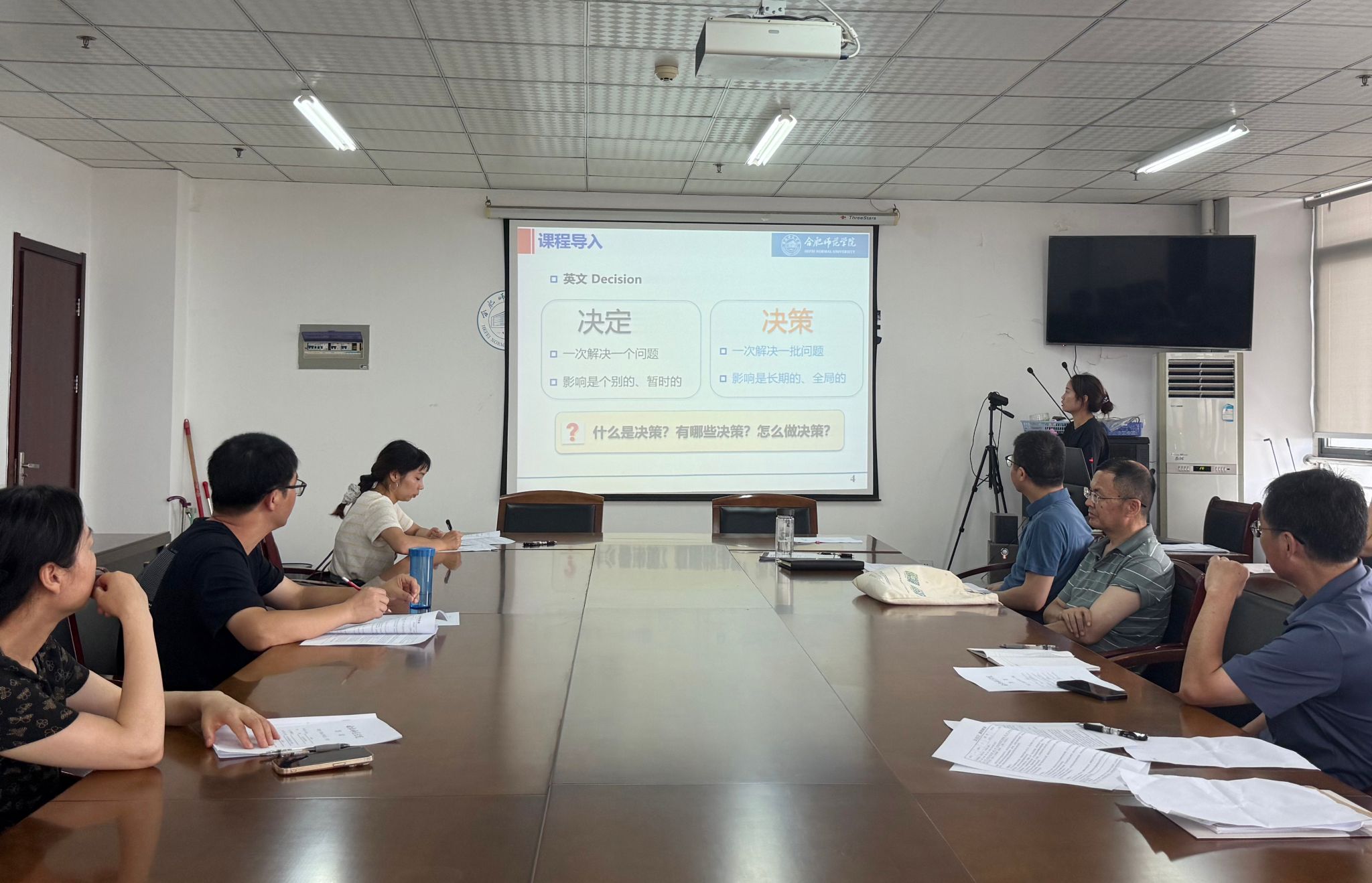为提升新入职教师教学水平、夯实课堂教学质量,2025年8月29日上午,pp电子组织新入职教师阳晶晶博士、高楠博士在行知楼902会议室开展磨课,参与评课的专家有钟玉文、李昌宝、王传兵、未良莉、郭云、高亚超、朱璟等骨干教师、督导员、教学能手。