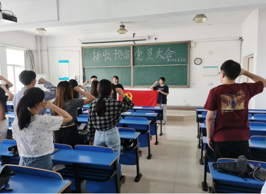本网讯 为了迎接“七一”党的生日,pp电子游戏平台网站第三学生党支部在逸夫楼301教室召开了组织党员入党宣誓活动暨“话初心、启新程”毕业生党员交流会,大会由支部书记曹国志老师主持,参加此次会议的还有10名中共正式党员、36名中共预备党员。支部书记曹国志老师带领全体党员面对党旗进行庄严宣誓,重温一次入党誓词。