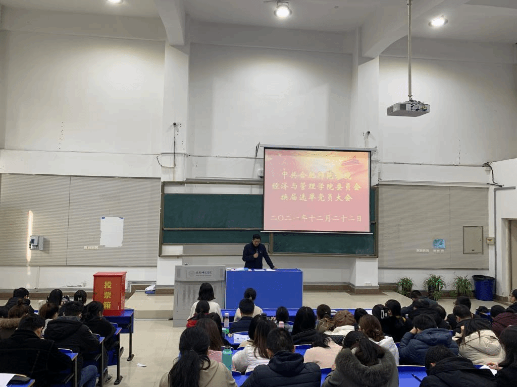 2021年12月22日下午,pp电子游戏平台网站党委换届选举大会在逸夫楼西阶一教室隆重举行。学院正式党员、预备党员共235人参加大会。大会由学院党委副书记陶敏同志主持。