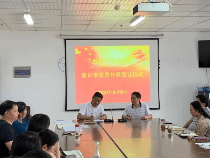 根据校党委的相关要求,pp电子游戏平台网站党委于9月8日召开意识形态工作责任状签订仪式,学院党政领导班子成员及全体教职工参加。仪式由党委书记沈辉同志主持。