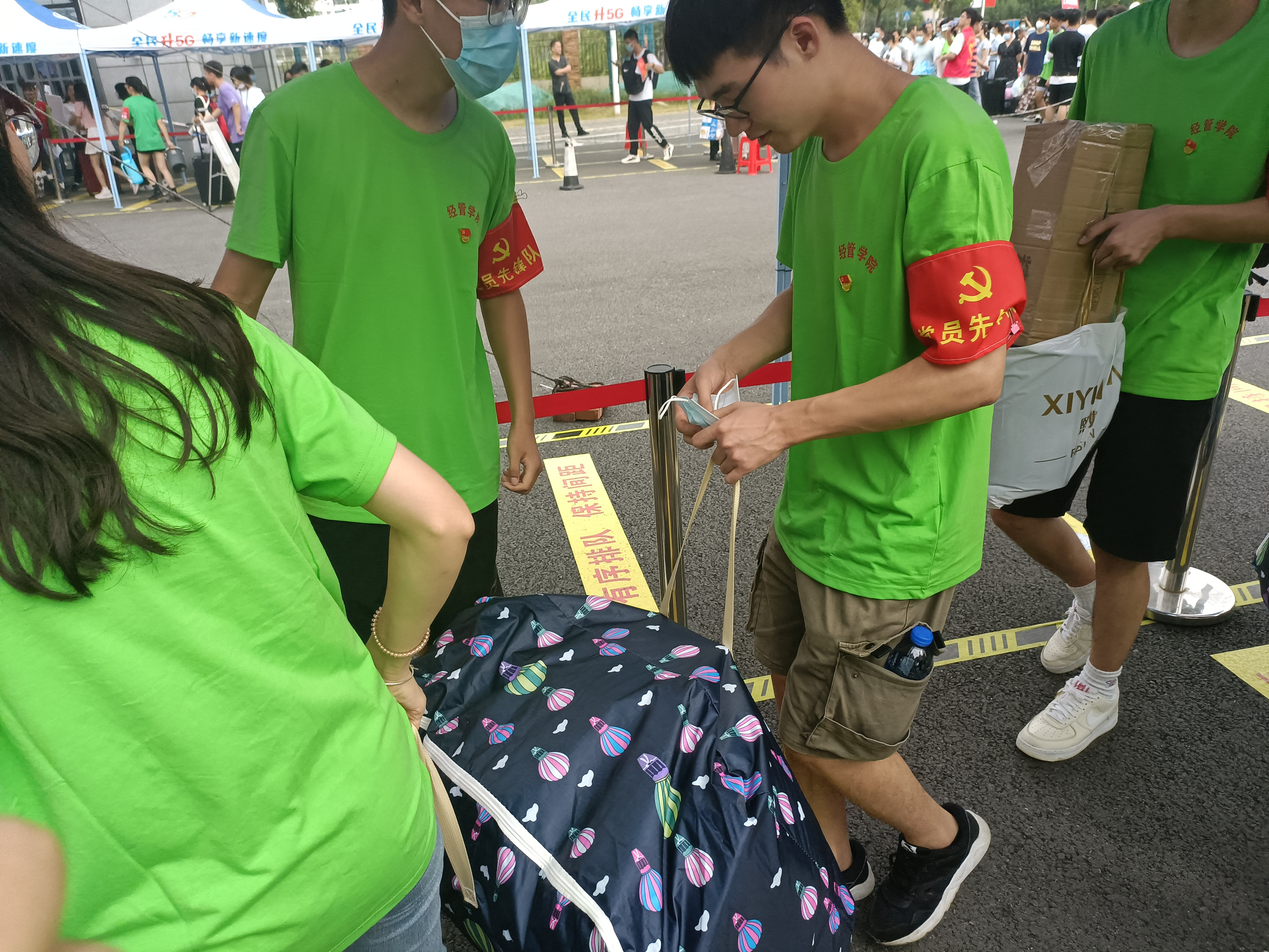 早上7时许,学院所有参与志愿服务的学生党员统一着装,佩戴党员徽章及袖章,亮明党员身份,乘坐大巴前往滨湖校区。他们分工明确,相互配合。党员作为志愿者,主要的工作是对报到新生进行引导,做好接待、引路、咨询、协助新生搬运行李等一系列工作。每位党员志愿者坚守岗位,让新生们切实感受到了经管学院大家庭的温暖。醒目的绿背心成为迎新现场一道流动着的靓丽风景线。