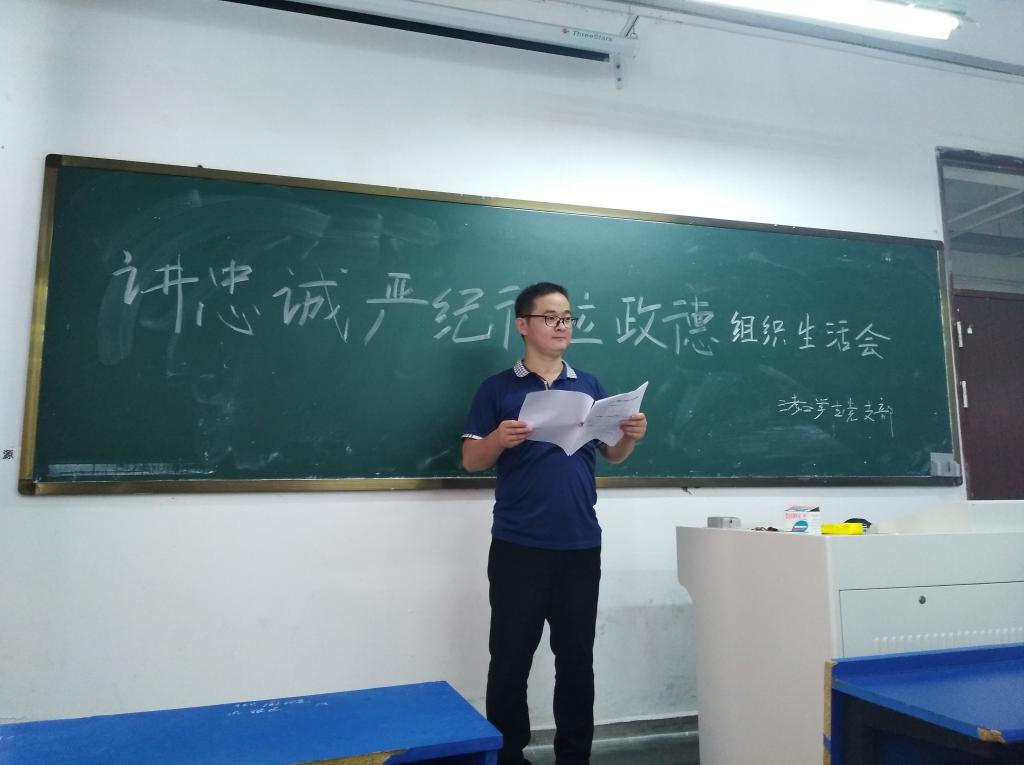 经济系支部学生支部马悦向大家阐明了保持思想纯洁性的意义,呼吁在座党员要深刻认识开展“讲严立”专题警示教育的重要性,把思想和行动统一到学习和个人生活上来。要在讲忠诚上作出表率,认真学习先辈们对党无限忠诚的先进事迹,主动对标看齐,夯实理想信念根基。管理系学生支部书记杜姣带领支部党员学习了习近平新时代中国特色社会主义思想和党的十九大精神,学习了《中国共产党章程》《准则》《条例》部分条款,开展了谈心谈话活动。三孝口学生支部书记曹国志强调要在严纪律上提高标杆,以“鲁炜”案和“杨、方、曹”特别是身边的典型案件为反面教材,深入反思剖析,汲取教训,筑牢廉洁纪律防线。全体党员以“六聚焦六整肃”为主要内容,结合自己的思想、工作、生活和作风实际,认真严肃开展批评和自我批评。