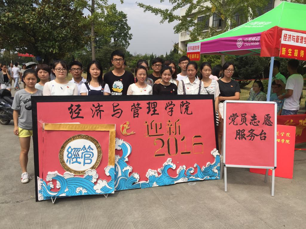 pp电子游戏平台网站学生党员积极发挥先锋模范作用,在迎接2016届新生中深入开展志愿服务,践行“两学一做”。经管学院学生党支部在新老区迎新点设立了党员志愿服务台、接待处设立党员先锋岗,每名党员佩戴党员徽章亮出身份开展志愿服务。