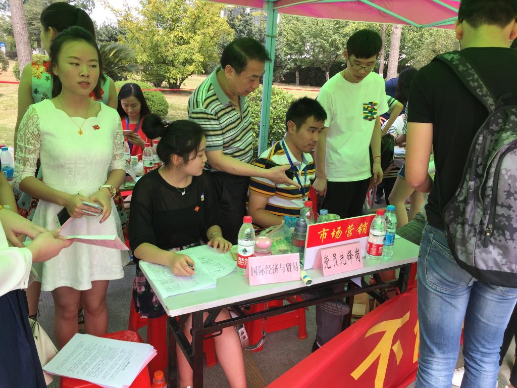 在迎新工作中,经管学院党员亮身份、志愿服务新生及家长,充分发挥了党员先锋模范作用,以实际行动彰显“‘两学一做’学习教育”效果。