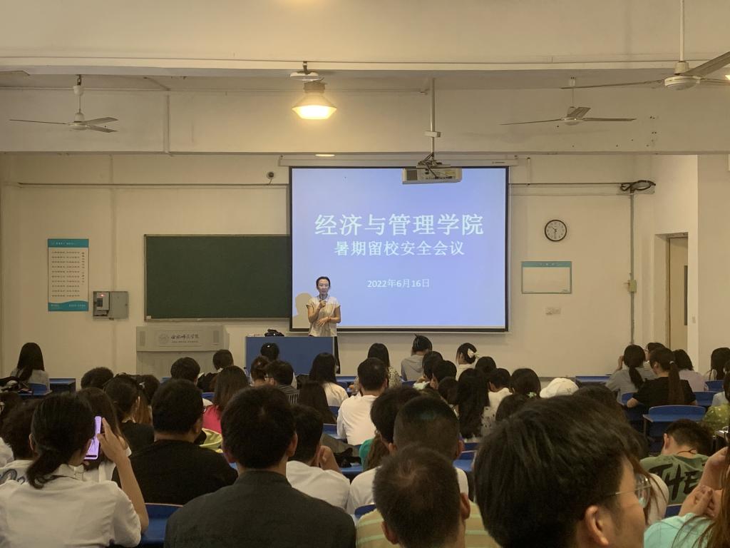 本网讯 为切实做好2022年暑期留校学生的安全教育工作,明确学生在暑期留校期间的安全责任与义务,提高留校学生的安全防范意识,6月16日上午10点半,pp电子游戏平台网站在锦绣校区逸夫楼A109教室,面向暑期留校的160名学生,开展了暑期留校学生安全管理会议。学院党委副书记陶敏,辅导员陈梦莹、王瑞瑞出席本次会议。
