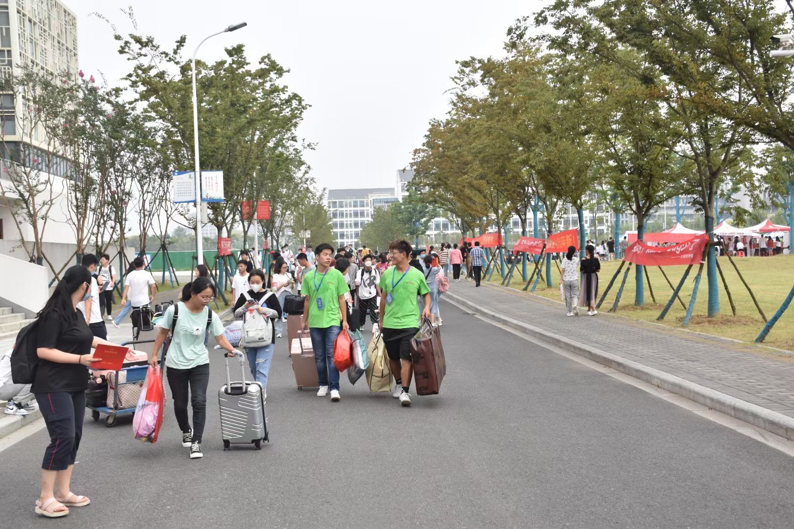 本网讯秋风送爽,丹桂飘香,又是一年开学季。2021年9月4号,合肥师范学院喜迎2021级新生报到。为确保pp电子游戏平台网站迎新工作高效有序开展,学院党委成立迎新工作领导小组,召开专门会议周密布置,全力配合做好新生接待及后勤保障工作。