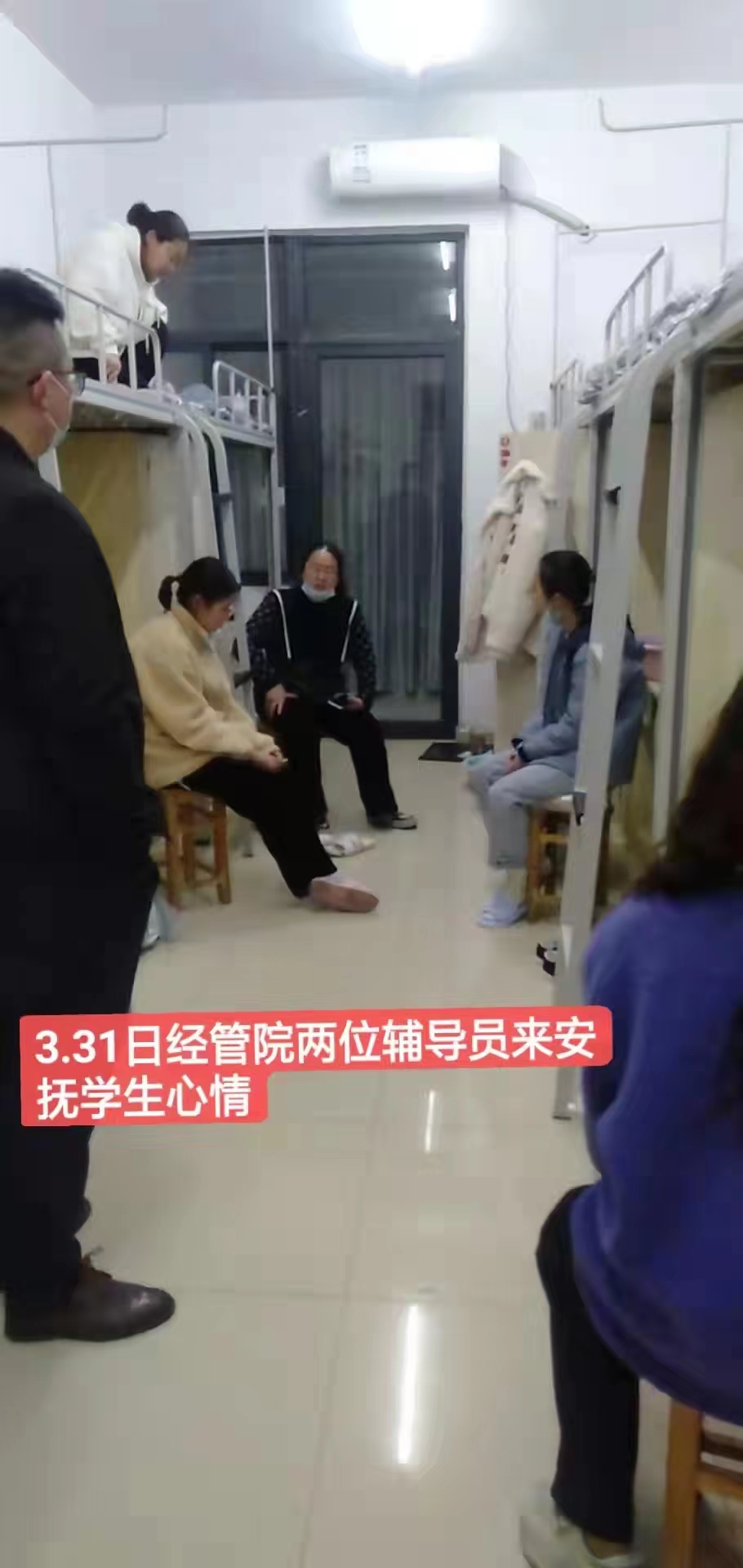 学院坚持做好“提前量”、打好“主动仗”,要求教师在开展线下教学的同时提前做好线上教学的准备,做到两手抓、两不误。学院辅导员也充分利用线上线下两个渠道,加强对学生的教育引导。第一,多次召开疫情防控主题班会和班干部会议,与学生共同学习《违反新冠疫情防控管理的行为及法律后果明白纸》,组织学生集体签订《疫情防控承诺书》,实现了在校生100%签订,要求积极配合核酸检测、坚持每日辅导猫打卡、严格履行请假手续等,进一步增强学生疫情防控意识。第二,深入开展宿舍走访活动,加强对学生宿舍文化建设和卫生安全情况的了解,强化学生管理,保障学生人身安全和心理健康。第三,积极动员学生开展系列素质拓展活动,强化身体锻炼,并充分利用清明假期时间,号召学生积极参与文艺晚会等活动,最大程度丰富学生文化生活。
