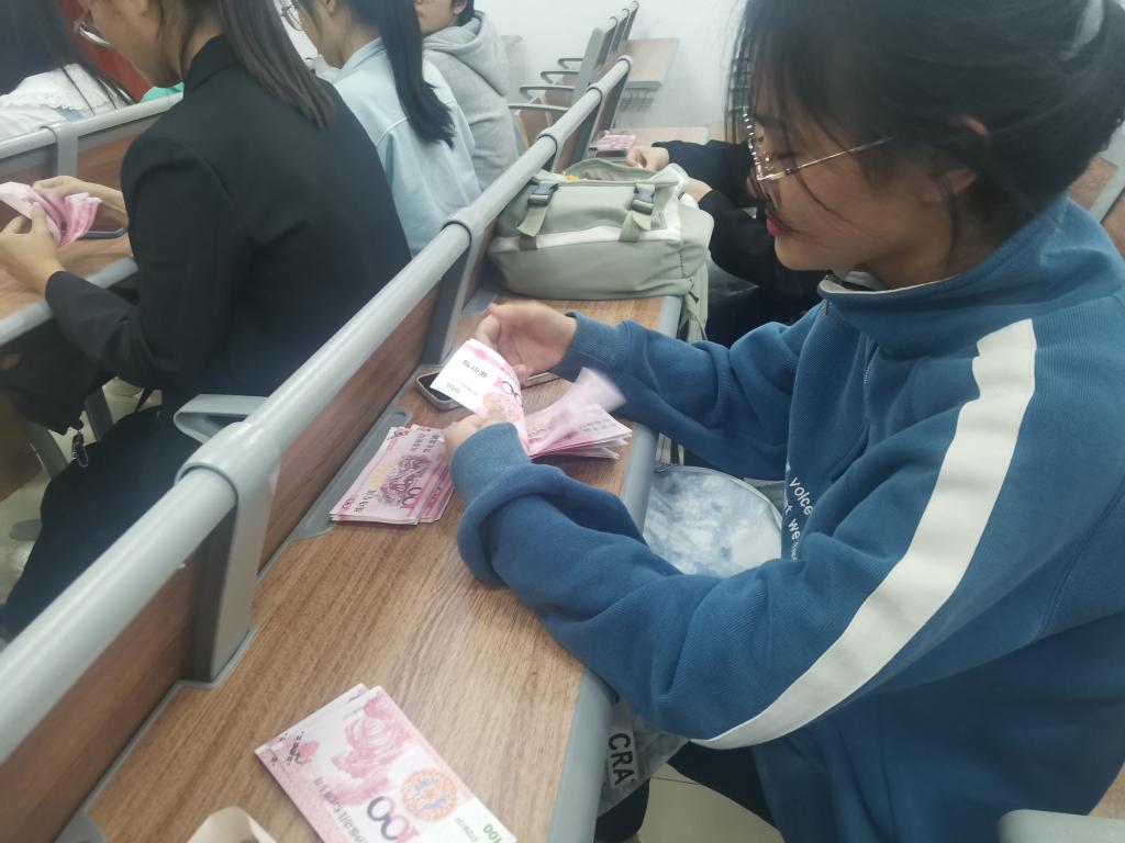 本次活动的目的在于提高同学们的专业技能,培养专业素质,丰富同学们的课余生活。活动开始,主持人介绍比赛规则和注意事项,参加比赛的同学在候场区等待,相关的规定与流程已经仅由裁判员说明同时学生计时员及时配好位置,学习部的有关人员一切准备就绪,一场激烈的比赛正式开始接着一轮与一轮的比赛选手充满自信与活力地进入比赛场地。比赛采用单指单张、多指多张点钞法,要求在规定时间内完成点数、计数等多道工序,既检验参赛选手的点钞速度,还要求点钞的准确性。随着主持人的一声令下,计时员开始计时,选手们也开始点钞,每位同学点钞的手法及手势都各不相同,但他们点钞的速度都非常快,在激烈争夺的比赛中,教室只听见点钞纸滑过指尖的沙沙声,选手们都飞速地挪动手指,全神贯注于手中的纸钞。