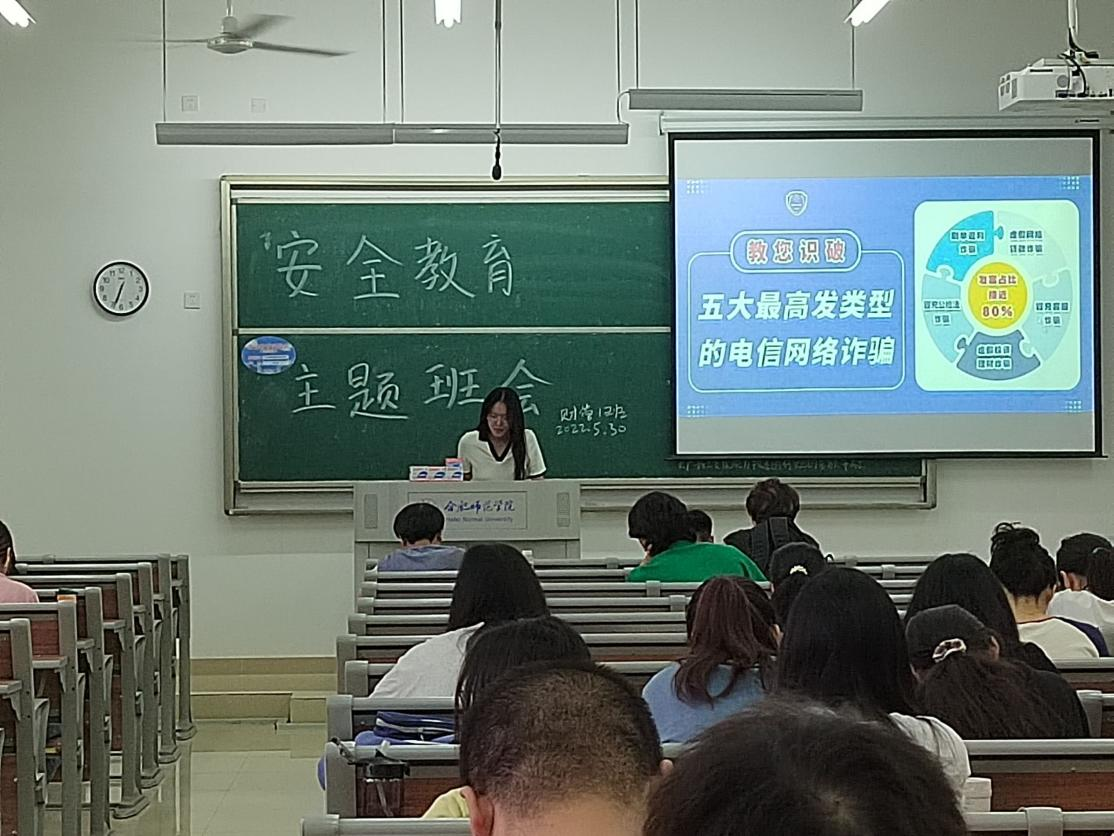 通过对大学生常见受骗类型的讲解,结合学校保卫处编制的《反典型网络诈骗警示通报》真实案例,让学生了解诈骗分子的作案手法手段,以案示警、以案为戒。强调务必下载国家反诈中心APP,开启来电预警功能,发挥“APP自检”、“风险查询”的功能,学习诈骗防范知识,提高日常警惕。