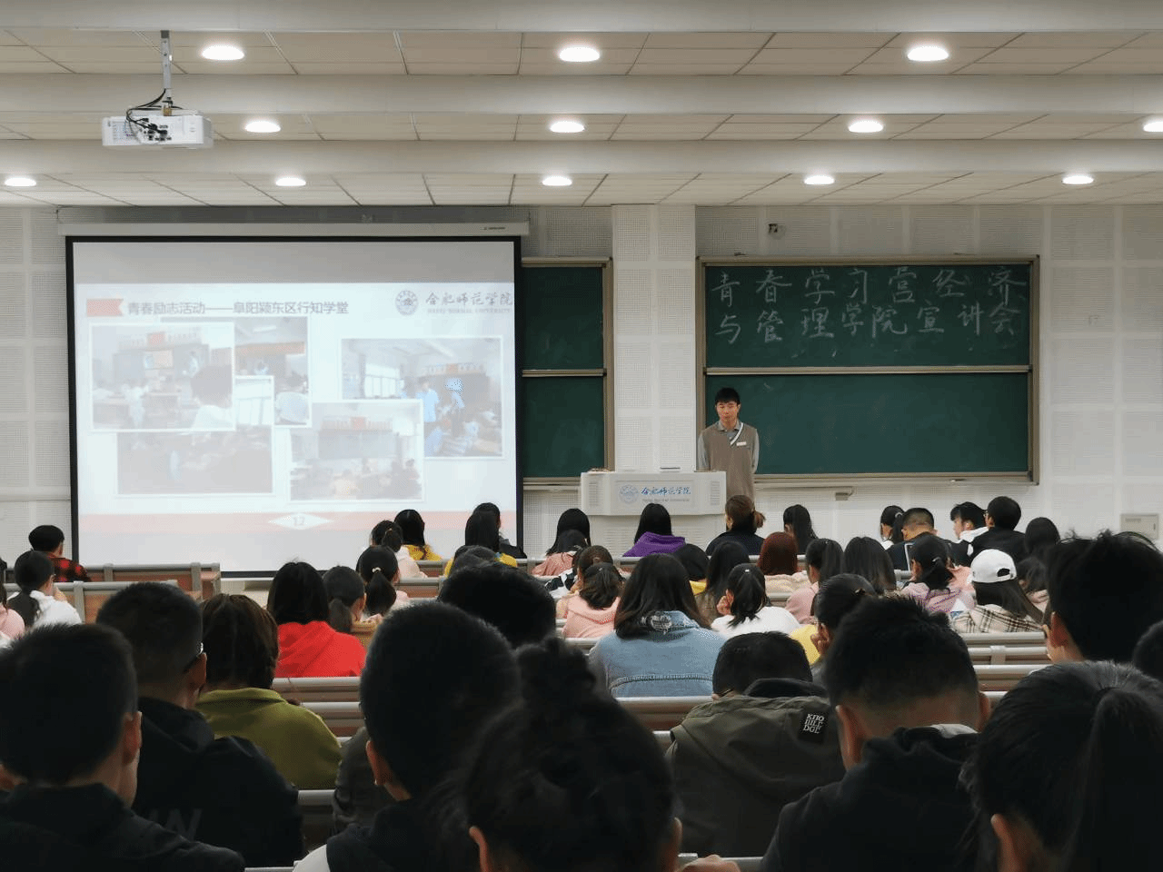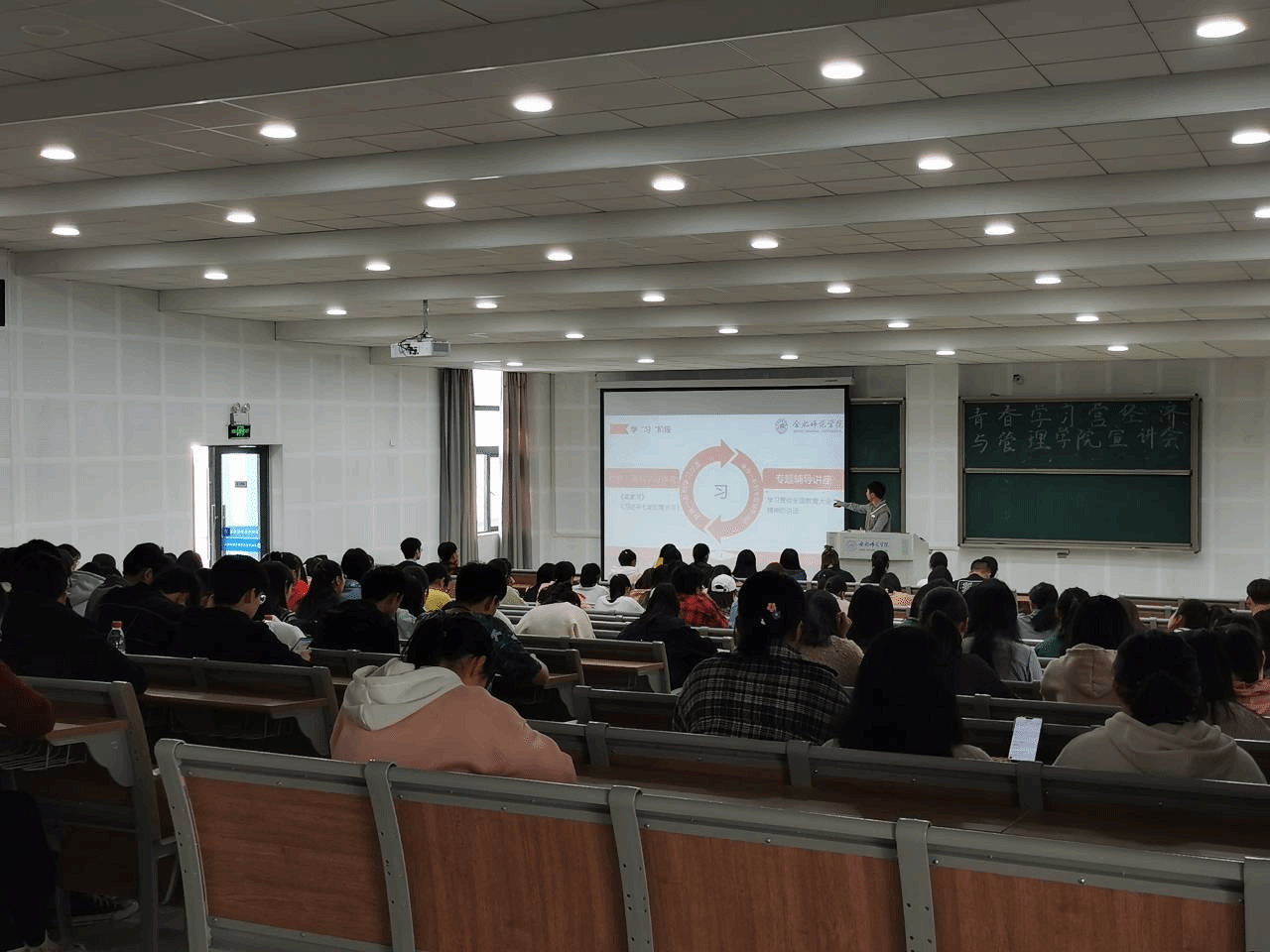 11月14日与17日,pp电子游戏平台网站于锦绣校区和滨湖校区开展了三场“青春学习营”宣讲会活动。2017级财务管理专业刘长青同学为此次活动的宣讲人,经管院2019级全体新生参加了此次宣讲会活动。