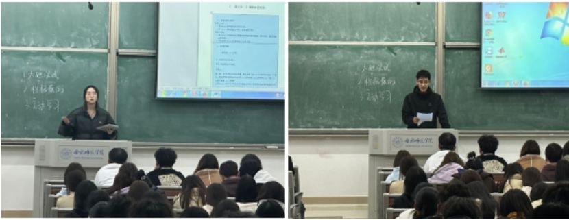 接下来,学姐熊思兰、学长张超,从参赛准备阶段、团队合作、解题思路等多个方面分享了他们的参赛经验。鼓励同学们要大胆尝试,从最初的模仿学习开始,进而主动学习,敢于挑战自我,勇于创新,实现自我突破。同时要关注社会热点,将所学知识与实际问题相结合,发挥创新思维,为社会发展贡献力量。