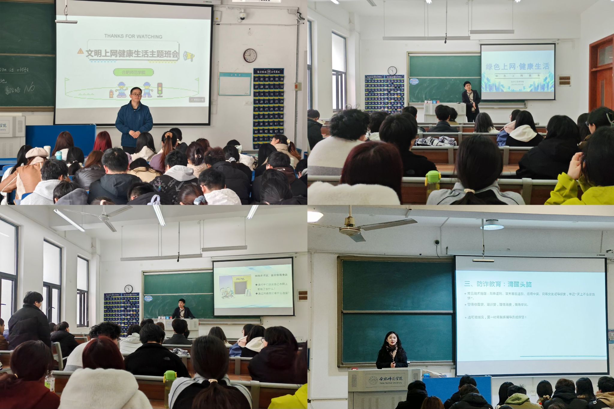 在班会上,辅导员阐述了网络中存在的一些不良信息,包括色情等不健康的“黄色”信息、非法和危险的“黑色”信息、消极思想和颓废的“灰色”信息以及血腥、暴力、仇恨等其他不良信息,告诫同学们要提高自身素质,抵制网络诱惑,如果发现不良信息,要通知朋友共同抵制,并报告有关部门。