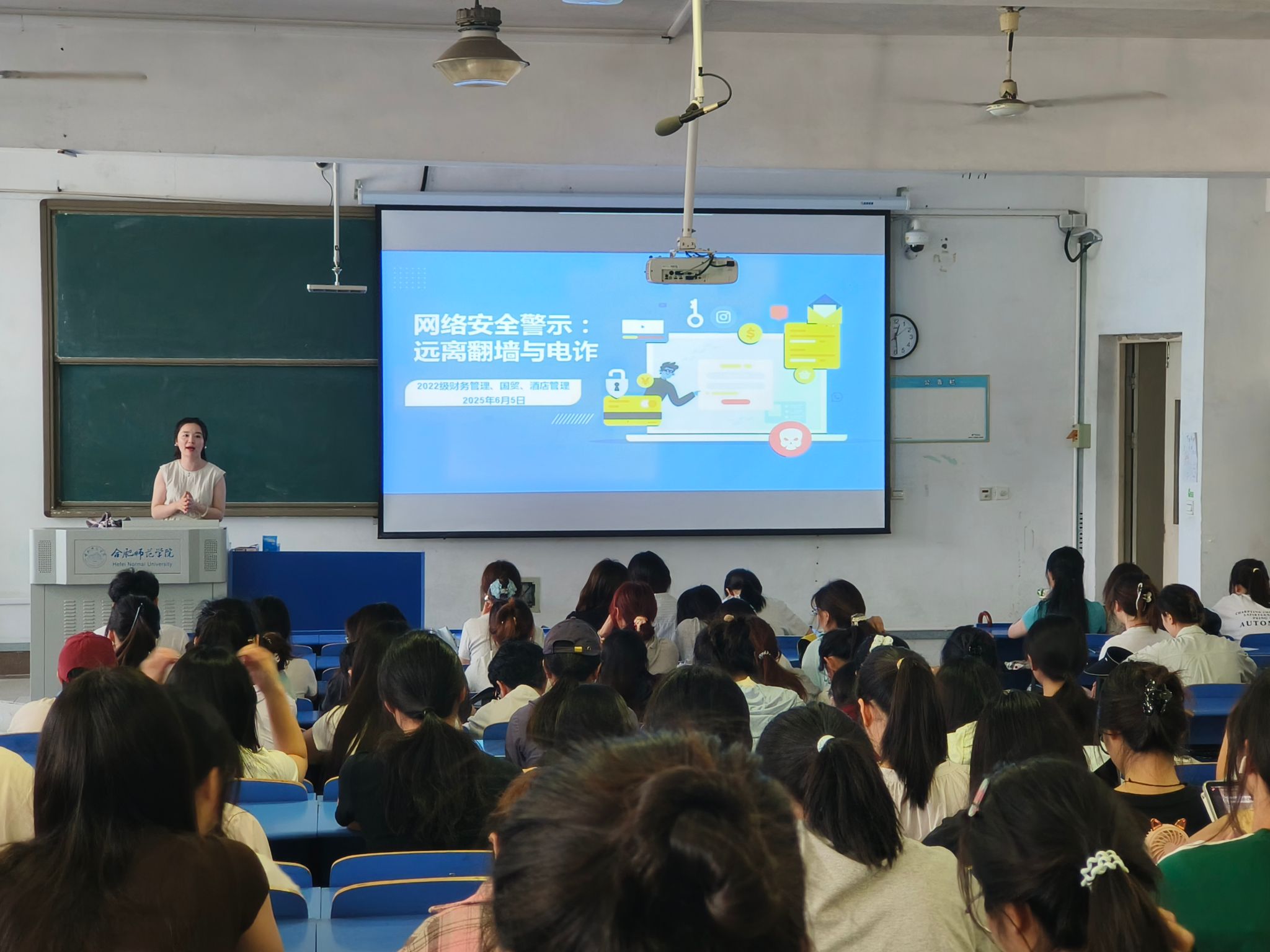 会上,范颖结合学生的真实案例,深入剖析网络交友诈骗的常见套路,还系统梳理了其他高发电信诈骗类型,如网络贷款诈骗、刷单返利诈骗、冒充客服退款诈骗等,提醒同学们保持警惕,切勿轻信陌生链接和来电。