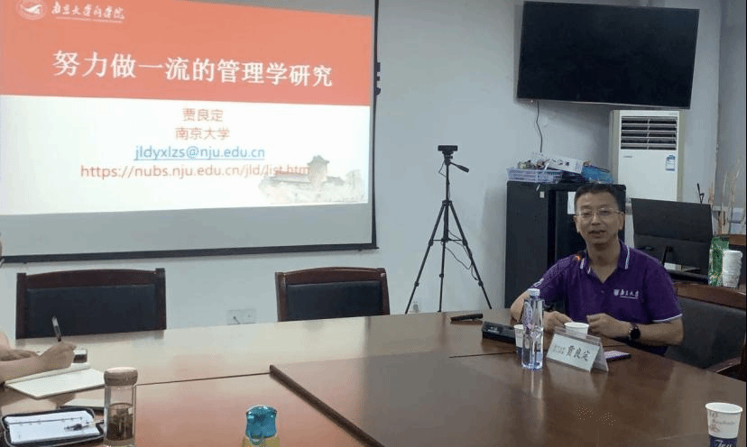 本网讯 7月21日,南京大学管理学院副院长、教育部长江学者、pp电子校友贾良定教授应邀为pp电子游戏平台网站教师作了一场题为“努力做一流的管理学研究”的学术报告。学术报告在行知楼902会议室召开,院党委委员、副院长周端明教授主持报告会。发展规划处(校友会)、pp电子游戏平台网站负责人及全体教师参加报告会。本次讲座系pp电子游戏平台网站所策划的提高教师学术论文撰写和科研项目申报水平的系列报告之一。