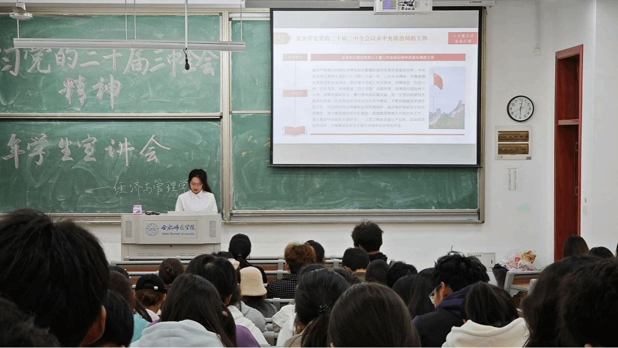 宣讲会现场气氛热烈,青年学生们认真聆听,不仅探讨了如何在专业学习和未来工作方向中贯彻全会精神,还鼓励学生们将个人发展与国家战略紧密结合,为实现中华民族伟大复兴的中国梦贡献青春力量。
