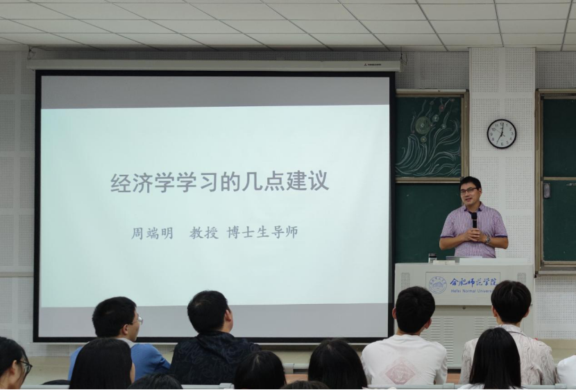 本网讯 为帮助新生更深入地了解经济学专业,更加主动地把握未来学习方向,9月14日晚,院党委委员、副院长周端明教授给pp电子游戏平台网站学生作了“经济学学习的几点建议”专题报告。pp电子游戏平台网站党政负责同志、辅导员及2023级普通本科新生200余人聆听了本次报告。