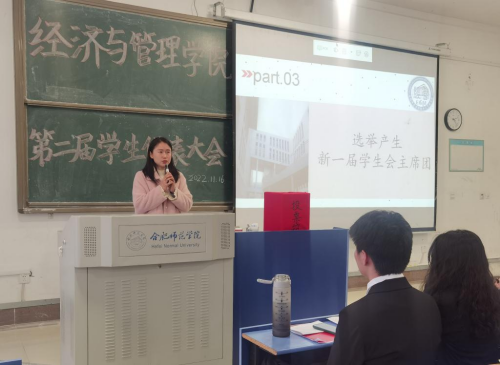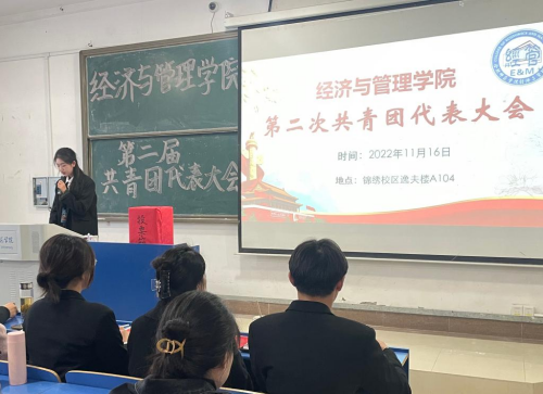 本网讯11月16日,pp电子游戏平台网站第二次学生代表大会暨第二次共青团代表大会在锦绣校区逸夫楼A104教室组织召开。分团委书记赵燕、副书记蒋诗伟、团干代表和普通学生共百齐聚一堂,共同谋划全院学生自身发展的大事。