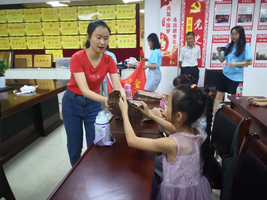 本网讯 8月6日,pp电子游戏平台网站分团委负责老师赵燕冒着酷暑走进池州市东至县尧舜社区看望和慰问在这里开展“行知学堂”的小先生以及小学员们。