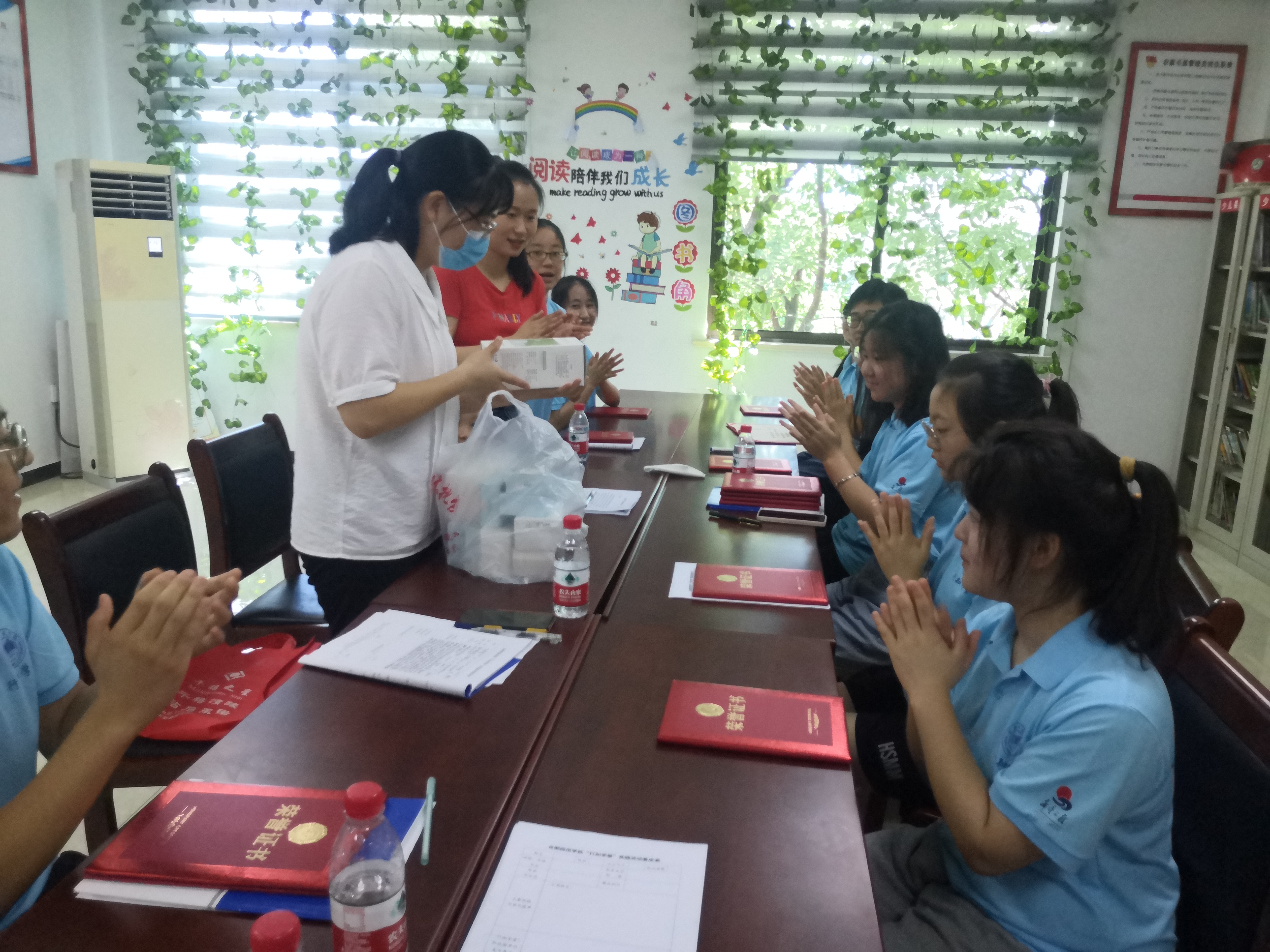 走进学堂时,小先生正在进行趣味英语的授课。赵燕走进学堂十分亲切地向小先生以及学员们问好,询问小学员们这段时间上课以来的感受,并对小先生们的工作给予了肯定,同时也提醒了他们在疫情期间要注意好防护工作。随后,老师向各位小学员们赠送了学习用品。