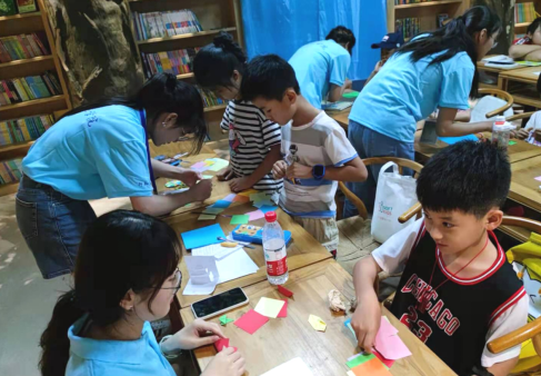 7月12日上午,“玫瑰园行知学堂”顺利开班。开班仪式上,“小先生”们首先对“行知学堂”的开办意义和宗旨进行了简单的说明,并对小学员们提出了基本的课堂纪律要求规范。随后,森林书屋杨店长发表了对“行知学堂”的看法和期望。她谈到,森林书屋已经和合肥师范学院“行知学堂”合作多次,获得了广大家长和小学员的肯定,并预祝此次“玫瑰园行知学堂”成功举办。之后“小先生”们进行了自我介绍,并用鼓励的方式让小学员们轮流自我介绍,熟悉彼此。开班仪式结束后,该学堂就根据前期安排的课表进入正常教学,以课业辅导为主,并进行党史教育、安全教育、手工制作、素质拓展等课程。课堂上,“小先生”们经过充分的备课,侃侃而谈,课堂流畅自然,小学员认真听课,积极作答,氛围良好。