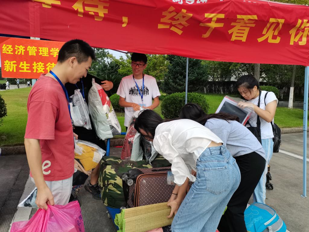 当日,学院领导、辅导员来到锦绣校区迎新现场,耐心解决新生开学的各种问题。学生党员负责接待新生报到,以经管院学生会为主体的志愿服务者们引导新生办理入学手续,进行报到注册并带领他们前往宿舍楼。每个步骤都依据学院迎新计划,有条不紊的进行。