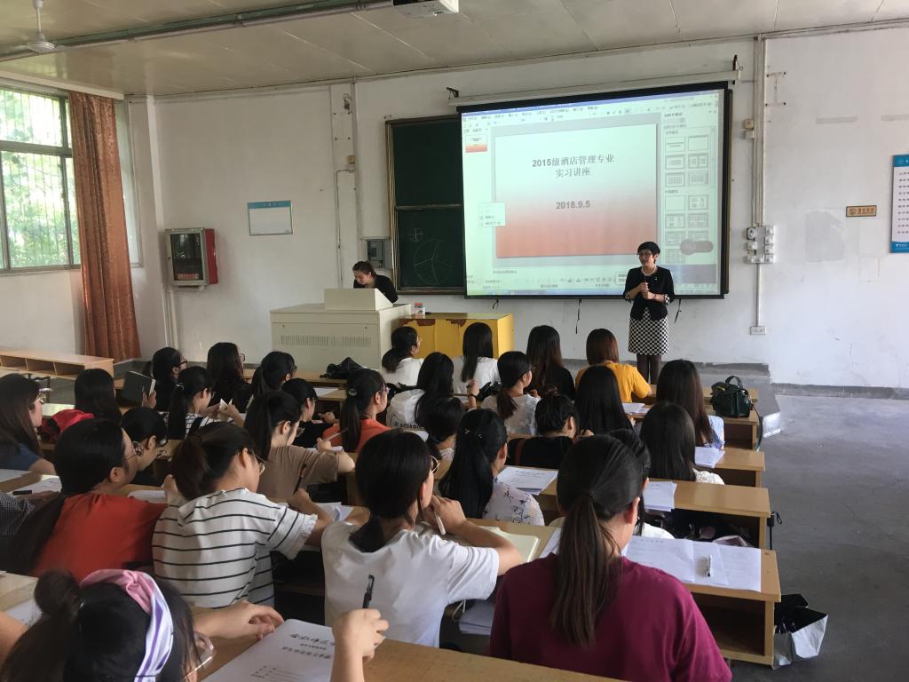 2018年9月6日上午,合肥万达文华&万达嘉华酒店人力资源总监李丽来到我校三孝口校区,开展了一场关于酒店的讲座,辅导员陈梦莹主持此次讲座。2015级酒店管理专业的学生听取了此次讲座。