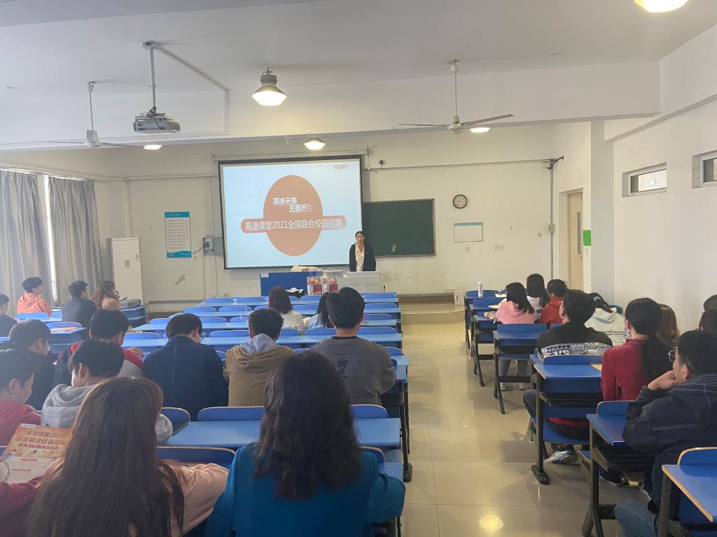 学院对两家企业一行人的到来表示热烈欢迎。招聘会上,两家招聘单位负责人通过PPT、视频播放、现场互动等方式介绍企业概况、招聘岗位、薪资待遇、企业文化以及晋升渠道等同学们较为关心的问题,同时高途课题教育集团还邀请目前入职的员工,原20级数学与统计学院优秀校友李海燕分享求职经验和心得感受,现场气氛活跃。毕业生根据自身求职意向踊跃投递简历,积极参与企业现场面试。