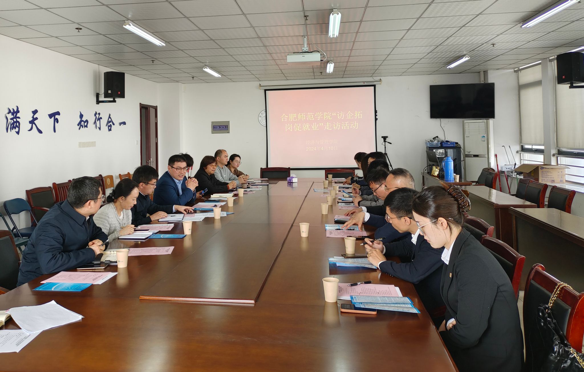 为积极响应和推进“访企拓岗促就业”专项行动,深化校企合作和供需对接,促进毕业生高质量就业,实现人才培养高质量发展,4月10日,pp电子游戏平台网站邀请正大集团安徽公司、安徽泰盈信息科技有限公司、合肥皇冠假日酒店、合肥强盛教育投资有限公司等4家企业代表来校开展访企拓岗促就业活动。校党委委员、副校长周端明出席座谈会,应邀来院的4家企业代表、就业创业工作处处长李健、pp电子游戏平台网站党政领导班子、毕业班辅导员参加会议。会议由pp电子游戏平台网站党委书记陈好主持。