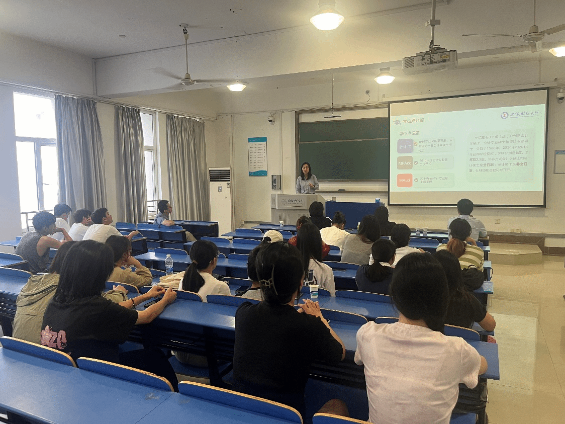 为提升学生更好地了解研究生招生学校和专业情况,助力经管学院学子报考研究生,9月18日下午,pp电子游戏平台网站在逸夫楼A204成功举办研究生招生宣讲会。本次宣讲会特邀安徽财经大学会计学院副院长董小红、会计学硕中心副主任郭凤华、会计专硕中心副主任李坤榕以及审计专硕中心副主任廖成赟亲临现场,为考研学子答疑解惑。经管学院副院长钟玉文和学院相关专业优秀学子参会。