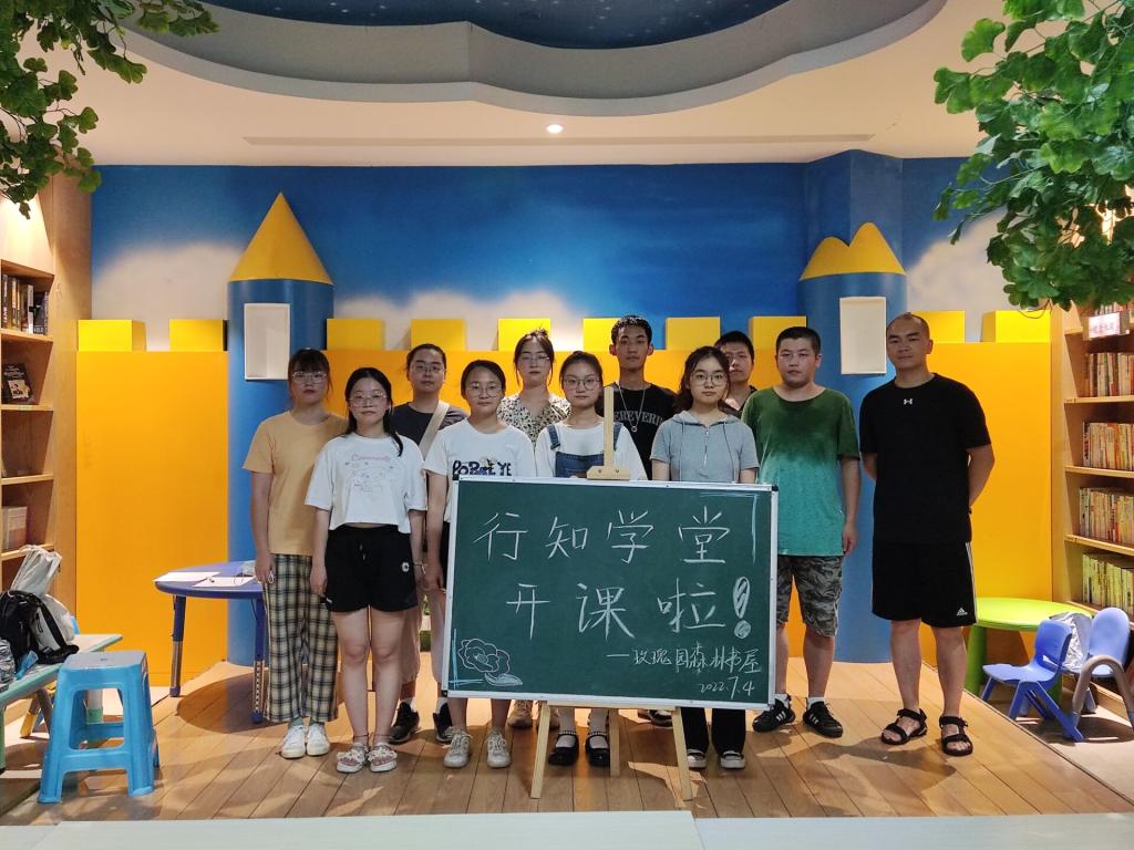 本网讯 7月4日上午,合肥市蜀山区玫瑰园森林书屋联合我校pp电子游戏平台网站开办的“玫瑰园行知学堂”正式开班。上午9:30,在学堂指导老师蒋诗伟的带领下,10名“小先生”提前在书屋集合,进行开班前的准备活动。上午10:20,开班仪式正式开始,参加本次活动的有:学堂指导教师蒋诗伟、玫瑰园森林书屋杨店长、10名“小先生”、40余名小学员和家长。