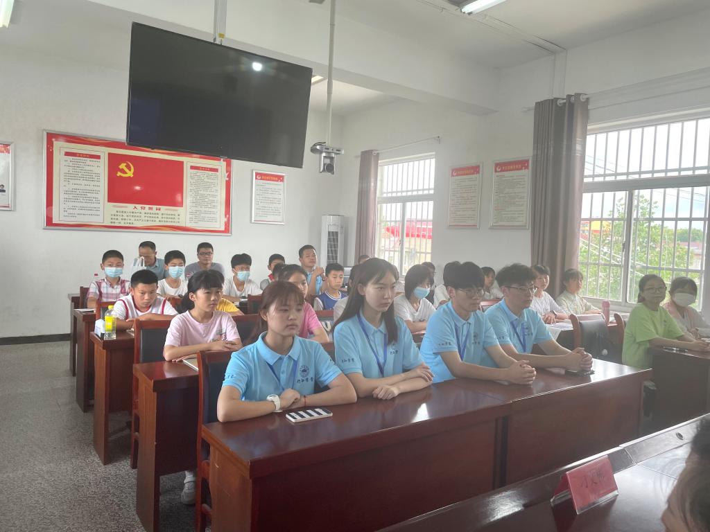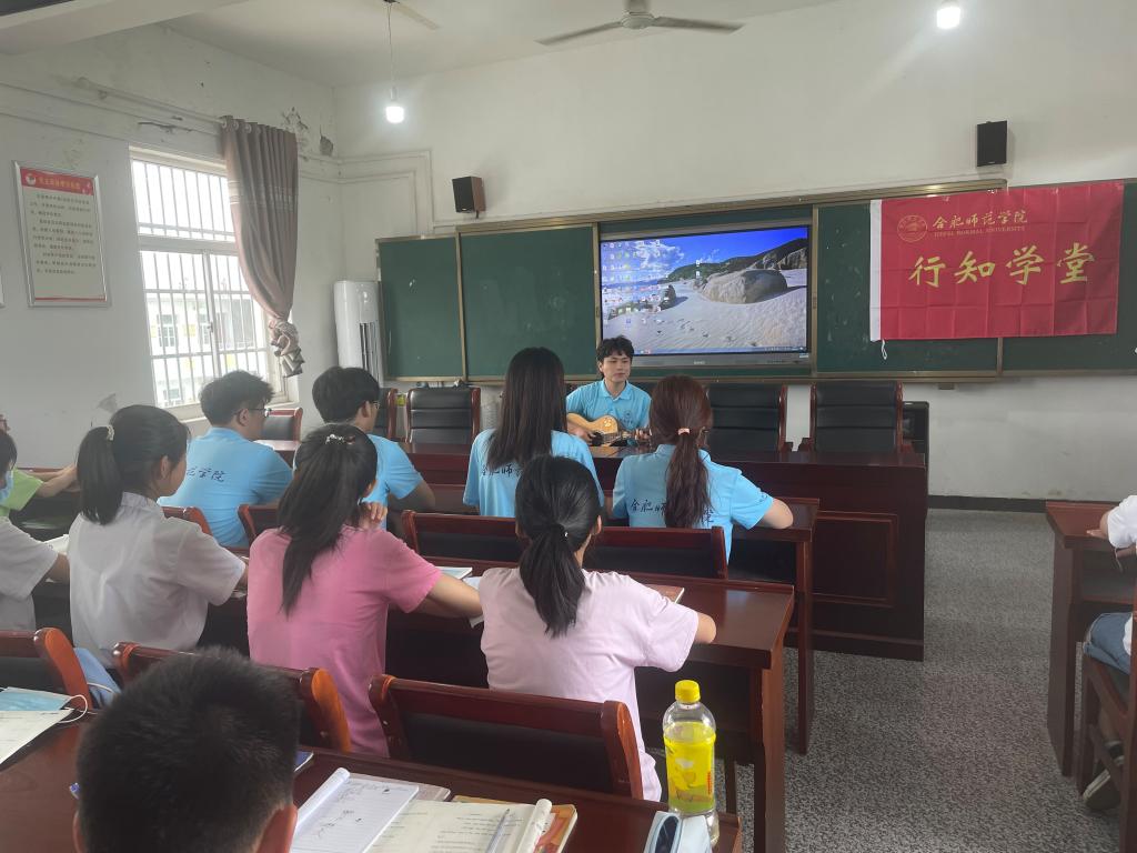 开班仪式上,无为市团市委副书记丁紫薇、无为市鹤毛镇党委书记范跃东致辞,介绍鹤毛镇暑期社会实践人岗对接基本情况,充分肯定“行知学堂”活动的社会价值和实践意义,对到来的大学生志愿者表示欢迎。校团委副书记刁文彬介绍了我校行知学堂建设的相关情况,并强调了要将小学员和小先生的安全问题放在首要地位;最后pp电子游戏平台网站党委书记沈辉宣布行知学堂正式开班。之后,合肥师范学院优秀“小先生”施在友为小学员们带来了开班第一课。