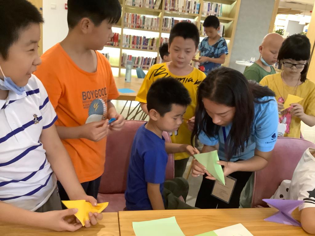 对手工课孩子们更是拥有无比的热情,都围在老师身边学习如何叠一个“爱心”。孩子们认真的样子真的特别可爱。这也是对“小先生们”的喜爱的一种体现。