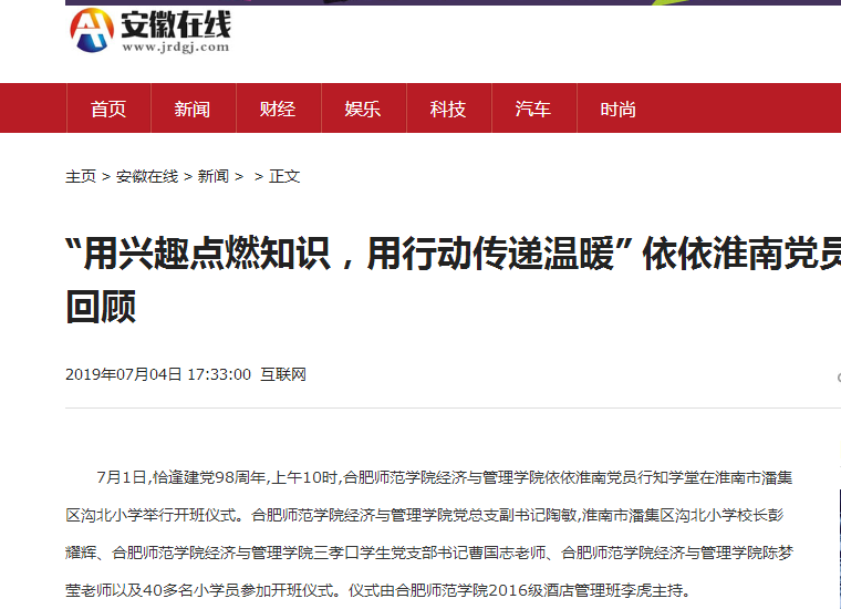 7月4日,安徽在线报道pp电子“依依”党员行知学堂实践活动。(pp电子游戏平台网站)