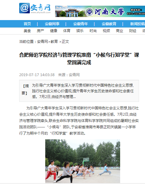 7月17日,安青网报道pp电子“小候鸟”行知学堂实践活动。(pp电子游戏平台网站)