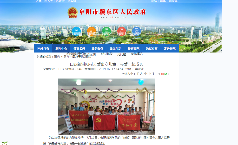7月17日,阜阳市颍东区人民政府官网再次报道pp电子“皖知”行知学堂实践活动。(pp电子游戏平台网站)