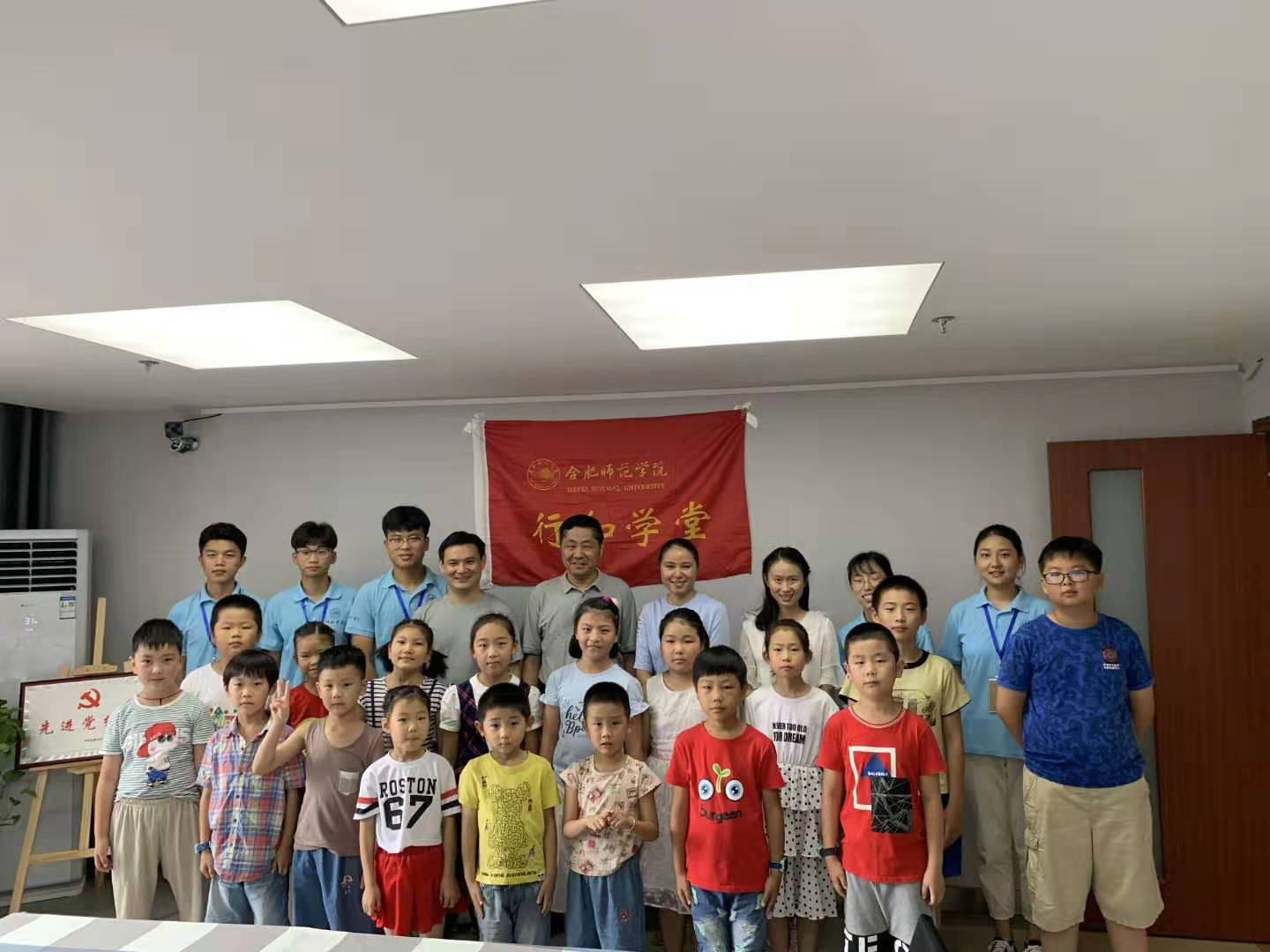 7月底,pp电子游戏平台网站党总支书记沈辉、团总支书记赵燕和“行知学堂”指导教师李志东驱车前往合肥鲁园社区,看望在这里举办“行知学堂”的各位小先生和参与的小学员们。