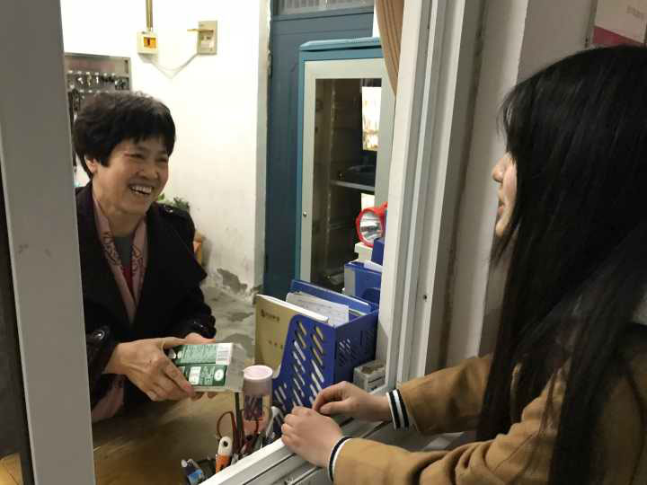 当天晚上我们带着热牛奶去送给行知楼守门的大叔和校门卫叔叔。叔叔们都露出可爱的微笑,黑夜中的寒意希望我们的热牛奶能让他们觉得这个黑夜还是暖和的。之后我们又去为九栋和十栋的宿管阿姨送去备好的热牛奶,阿姨们也都倍感欣慰。此后的日子我们班也会严加督查班级的卫生情况,给学校的阿姨们减轻负担。