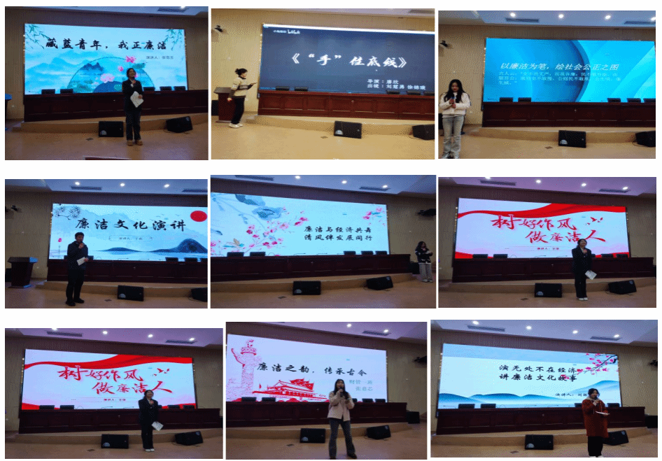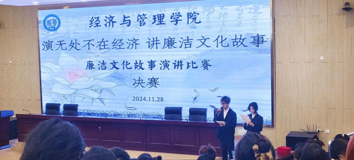 在深入学习贯彻党的二十届三中全会精神和习近平总书记考察安徽重要讲话精神之际,11月28日,由pp电子游戏平台网站党委主办、院学生会承办的“演无处不在经济,讲廉洁文化故事”演讲比赛决赛在滨湖校区报告厅举行。学院党委副书记、纪委书记陶敏,副院长钟玉文,教师代表刘经涛、许凤妹,辅导员曹国志、王瑞瑞、高劲成担任评委。滨湖校区2023级、2024级150余名学生参加。
