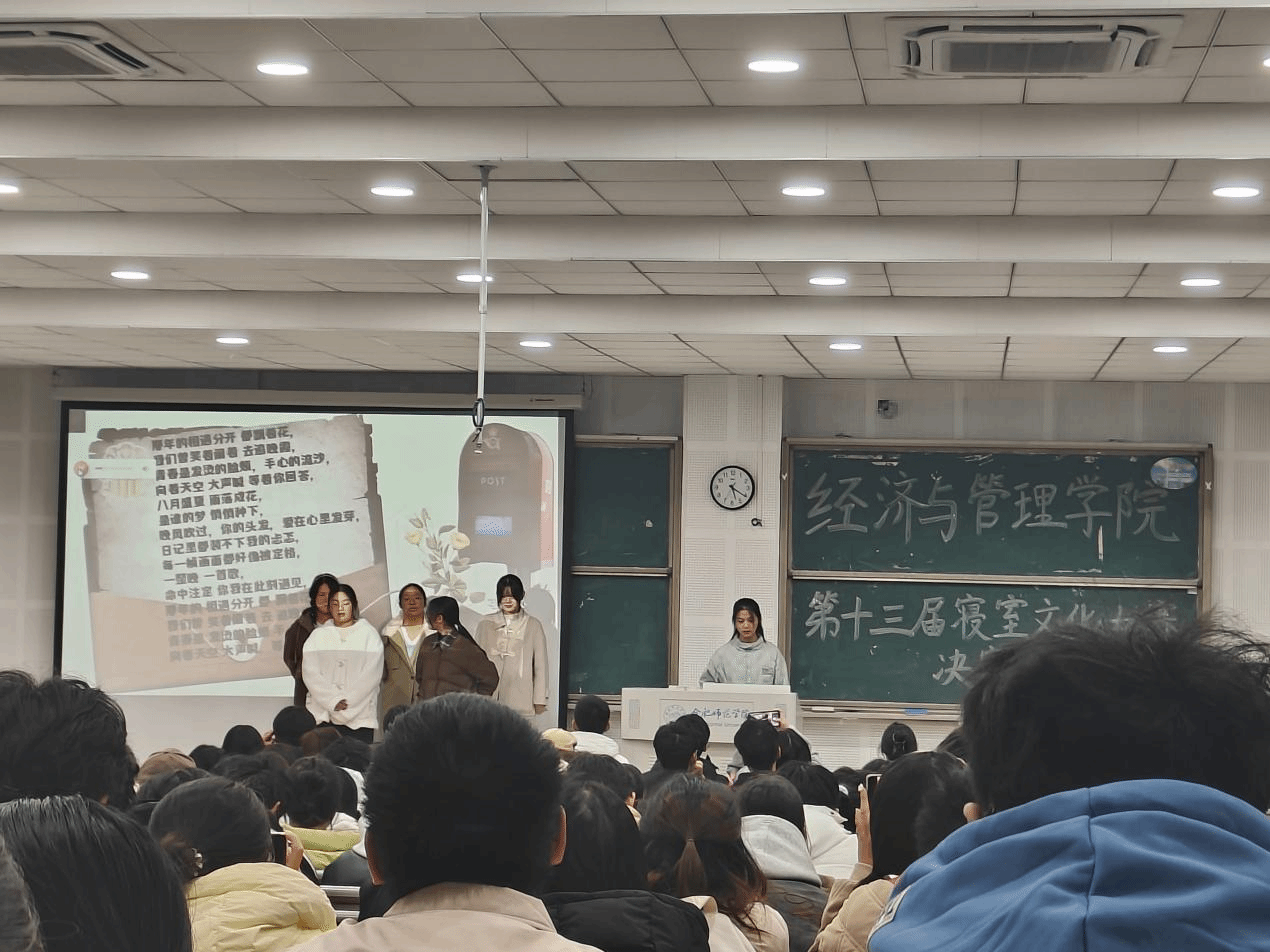 大赛举办以来,得到了经管院师生的积极响应与广泛参与。在初赛,各评委通过参观参赛选手宿舍实地考察打分,在激烈的角逐后共有八间宿舍脱颖而出进入决赛。决赛现场,各寝室派出代表通过PPT展示、才艺表演、个人介绍等方式,全方位呈现了充满创意的寝室文化内容,寝室温馨布置以及和谐积极向上的寝室氛围。有的寝室以“书香寝室”为主题,满室的书籍彰显良好的学习环境;有的则以“运动激情”为主题,讲解中洋溢着青春的气息。选手们或意气风发斗志昂扬,或自信心满满彰显魅力,为在场的观众和评委们带来了了一场独特的视觉盛宴。